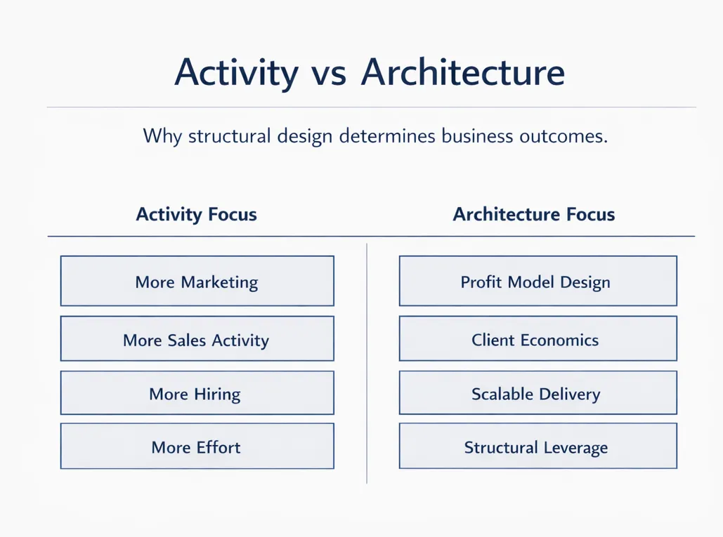 The discussion draws on the principles of Profit Architecture, the structural framework used to design businesses that produce durable profit, scalable operations, and transferable enterprise value.